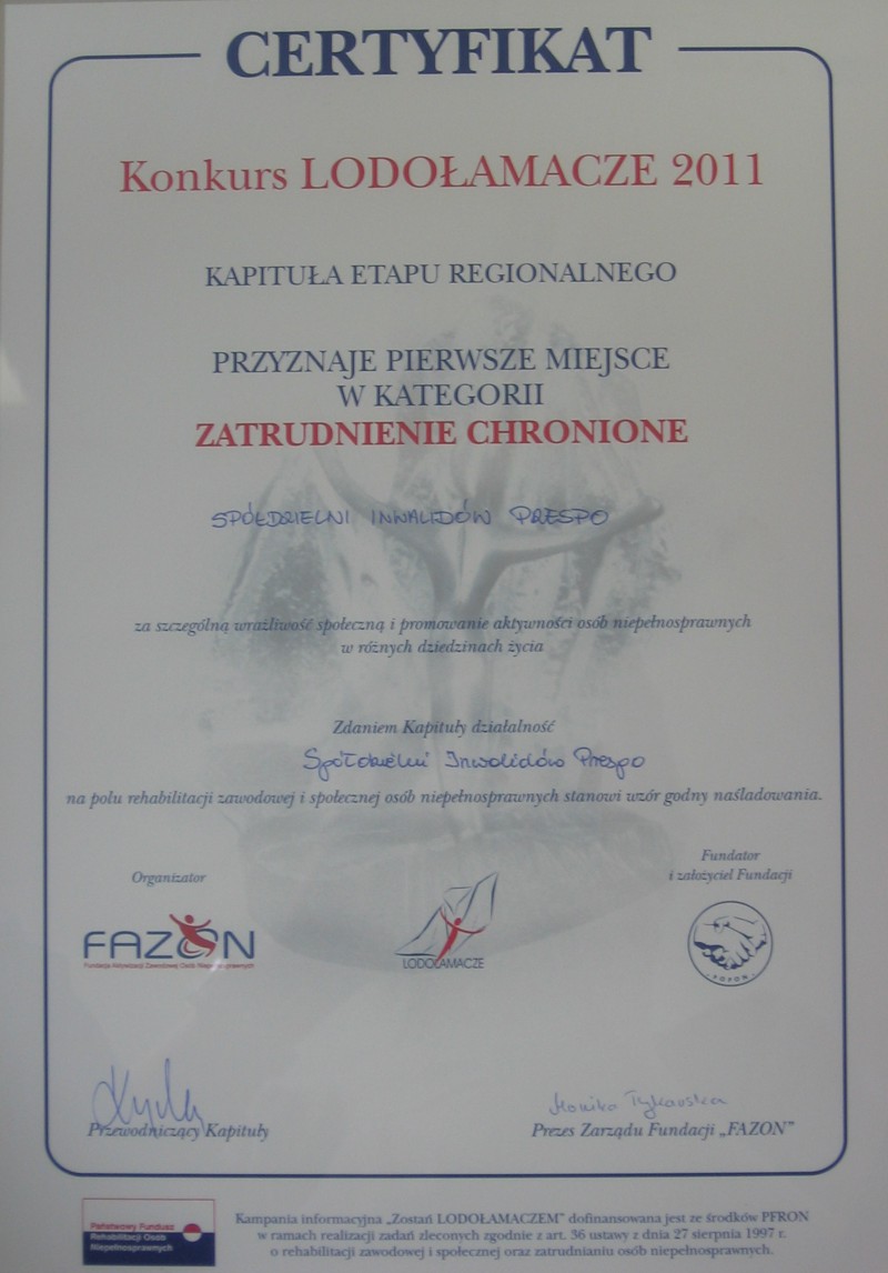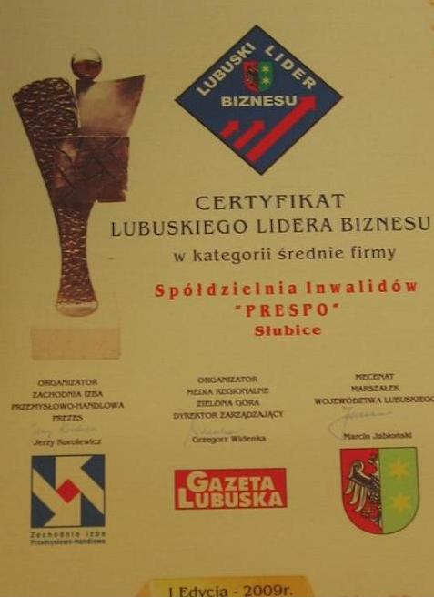 Potwierdzenie najwyższej jakości produktów oraz usług oferowanych przez PRESPO Spółka z o.o. stanowią certyfikaty i atesty nadane przez uznane w branży instytucje certyfikujące: